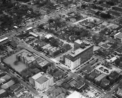 Fortune Arms Hotel, Burnet and W. 1st Street, Fort Worth; airview of the hotel/apartment building, 12/07/1951