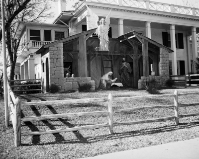 The nativity theme is predominant in outdoor Christmas decorations this year. The Christmas Tree was set up by the Tex-Pac Employees Recreation Club in the T&P Station concourse for the traveling public.