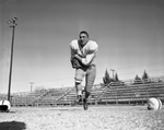 Shown is football player Kenneth Scott from Anson High. He is posing for the camera while holding a football in arms. Published in Fort Worth Star-Telegram morning edition December 10, 1951.