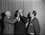Chamber of Commerce annual award dinner. Amon Carter, left, and Ben Moreel, Navy admiral and steel executive, who spoke at the chamber's annual dinner.