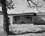 Here is closeup of the entrance of the country home of Mr. and Mrs. Earl Jones in the Rendon community. It's rustic. It will be a Christmas present to Mrs. Jones in keeping with the promise made by the husband two years ago. Jones and his wife supplied the labor, except for occasional hired help. Published in the Fort Worth Star-Telegram, December 16, 1951.