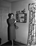 Miss Jeanne Vogtel with souvenirs of Portugal. Ms. Vogtel is visiting her parents, Mr. and Mrs. Harold C. Vogtel, 3716 Country Club Circle from a diplomatic post, as secretary to the ambassador in the American embassy at Lisbon, Portugal, for the last two and a half years.