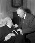 John J. Ray, 106 years old, receives an 82-year Masonic service pin from G. R. M. Montgomery at Ray's residence at 2808 Hemphill.