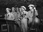 In a program as merry as old St. Nick himself, these Light Crust Doughboys from Burrus Mills made their tuneful gift to the Star-Telegram Tree and Music Festival a cheerful one. Left to right, Jack Perry, emcee; Paul Blunt, Lefty Perkins, Marvin Montgomery, Hub Hubbard and Red Kidwell.