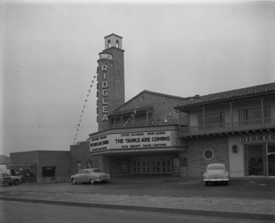 Ridglea Theater, Fort Worth; movie showing "The Tanks Are Coming."