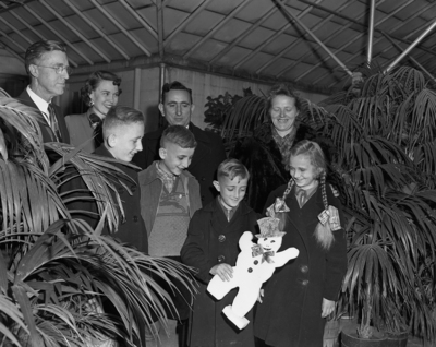 The Evald Krampitz family, displaced Poles, is shown after arriving in Fort Worth, a new home. Krampitz and his wife, Hulda, are shown in the rear. The children are, left to right, Walter, 14; Helmuth, 10; Paul, 8, and Alice, 12. They anticipate their first happy Christmas together. Previous Yules have been saddened by Europe's war strife.