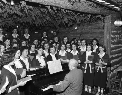 These members of the high school chorus of Our Lady of Victory Academy-- about half of the group is shown--sang Yule carols from many parts of the worked in a pleasing program at the Star-Telegram Christmas Tree and Music Festival in Burk Burnett Memorial Park. William J. Marsh director is at the piano.