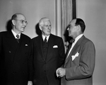 City and county officials and business men and representatives of the Red Cross and the armed forces toured the new Armour and Company blood plasma plant. Left to right, J. B. Thomas, president of Texas Electric Service Company; Robert E. Pearsall, Armour executive vice president, and Berl Godfrey, president of the Fort Worth Chamber of Commerce, discuss the plant.