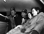 Soloist of the Moslah Shrine Chanters, V. Carl Shamburger, left, and Ray Dunaway, with Mathis Kelly and Patsy Kelly, 17, of Arlington, two young people who contracted polio were brought to the Star-Telegram Christmas Tree and Music Festivals in a car to hear the chanter and other groups sing.