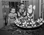 Honorees at the Christmas party by the social service section of the Junior Woman's Club were children who have been treated in the section's Cross-Eyed Children's Clinic. Two of them, Betty Lou Parker and Jimmy Bachelor, get a close look at the Santa Claus decorations.