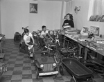 Two members of the Panther Boys Club polis the little cars the club members have collected and repaired for the Salvation Army Toy Store. They are William Robinson, left, son of Mr. and Mrs. Monroe Robinson of 1514 College, and Tony Romo, son of Mr. and Mrs. Ignacio Romo of 407 W. Magnolia. Mrs. William Johnson is in charge of the toy distribution to people in need.