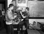 Halfback Bob Kirby and End Leon Duffey put the trimmings on their class tree at Arlington but what they want to trim most is La Vega in the battle for the District 2A championship. Published in Fort Worth Star-Telegram morning edition December 21, 1951.