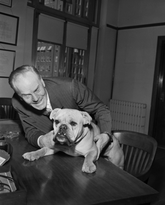 Image shows U. S. Marshal Wright with his bulldog, Santa.
