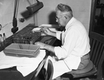 Series on Texas Livestock Sanitary Commission. Dr. C. F. Layton, assistant inspector in charge of the Bureau of Animal Industry's field activity in Fort Worth, makes a brucellosis test at the Texas Livestock Sanitary Commission laboratory in Fort Worth.
