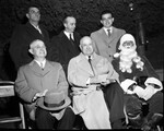 Christmas 1951 Community Tree. Front row; Mayor J.R Edwards, Amon Carter and Santa Claus. Back Row; Mayor C.L Bridges of Ederville, Clifton Mayor E.K. Parker and Tommy Vandergriff of Arlington.