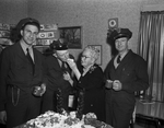 Mrs. Oma Pennock, second from right, held open house for the 11th year for Fort Worth bus drivers at her home. Left to right are W. P. Hartsell, Pat Sargeant, Mrs. Pennock and Joe Clark.