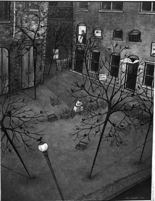 Iamge of a painting by Lirl Treuter was awarded honorable mention in the 1950 Local Artists Show for "The Birds Are Awake." Miss Treuter also has another work in the exhivition, current in the Fort Worth Art Association gallery at the Public Library. Published in Fort Worth Star-Telegram evening edition March 15. 1950.