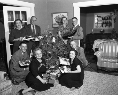 These four couples celebrated their annual neighborhood Christmas party. Left to right, are Mr. and Mrs. F. A. Hilliker, Mr. and Mrs. Harold Williams, Mr. and Mrs. C. A. Renfro and Mr. and Mrs. E. M. Doss.
