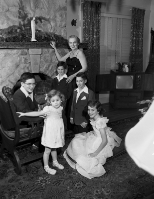 Mrs. Frank Crumley, 1412 Mistletoe Drive, recently elected president of St. Joseph's Hospital Auxiliary, will be installed. She is shown with her five children. The boys are, left to right, Frank Jr., seated; Johnny, with his mother's hand on his shoulder, and Denny. Kathleen is standing at left, and Mary Cecilia is seated, right.