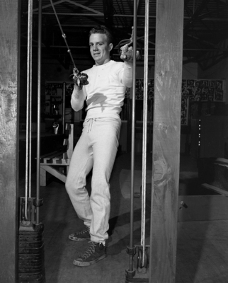 Bill Maines, 18-year-old novice featherweight, is looking forward to his first taste of Golden Gloves competition in the regional tournament at Will Rogers Memorial Coliseum. Published in Fort Worth Star-Telegram evening edition December 28, 1951.