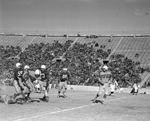 Carroll Daily, La Vega High School fullback, sprints toward a 24-yard gain to the Arlington High School 9-yard line in the first period in the 2A title game at Waco. Arlington's Larry Hufford (#73) made the tackle. Billy Jo Walker (#55), Arlington guard, is in background. The Colts won the game, 7-0. Published in Fort Worth Star-Telegram morning edition December 23, 1951