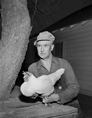 J. A. Bedwell, Granbury farmer sells feed in livestock and chickens. Published in Fort Worth Star-Telegram January, 1951.