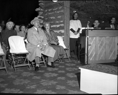 Christmas 1951 Community Tree. Mr. Carter shown with others at Community Christmas tree.