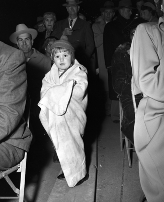 Elizabeth Ann Knight, 3, tries to keep warm Indian style at the Christmas program. Her parents are Mr. and Mrs. Albert Knight of Rt. 7 Box 403.