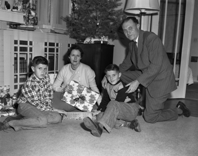 Mr. and Mrs. Luis Correa and sons, Luis Jr., left, and Freddie, of Monterrey, Mexico, are spending the holidays with her mother, Mrs. F. M. Poffenbach, 3058 Wabash. This is the first time in 10 years that Mrs. Correa, the former Miss Katherine Poffenbach, has been home for Christmas.