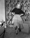 Image shows Carolyn Jones, a Hollywood starlet, readies for a premiere.