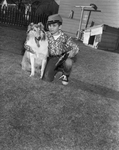 Robert (Junie) Bragan, son of the Cats' manager, poses with some of his presents-collie, Confederate cap and six guns.