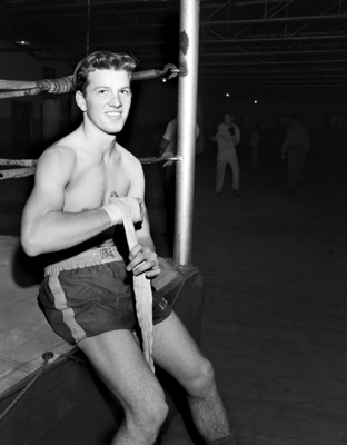 Shown is Bob Agee, 19-year-old ex-Tech High School student now stationed at Carswell Air Force Base who'll seek the movie welter title in the regional Golden Gloves tournament at Will Rogers Memorial Coliseum. Published in Fort Worth Star-Telegram evening edition December 28, 1951.