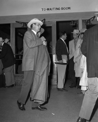 Image shows Paul (Bear) Bryant, University of Kentucky football coach, as he arrived in Dallas for Cotton Bowl game.