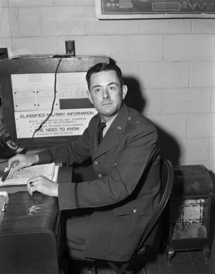Captain William G. Black was at his desk at 1711 Layton, directing organization of a new 400-man Air Force Reserve training unit here which will deal with Air Force administration and personnel specialties.