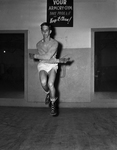 Joe Batson, flashy young Poly High School lightweight, preps for the Fort Worth Regional Golden Gloves tournament. Published in Fort Worth Star-Telegram evening edition January 7, 1952.