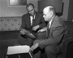 Cattlemen from 22 states were gathering in Fort Worth for the convention of the American National Cattlemen's Association. In the other photo, Loren Bamert, left, Ione, California, president, and F. E. Mollin, Denver, Colorado, executive secretary, do a bit of convention planning.