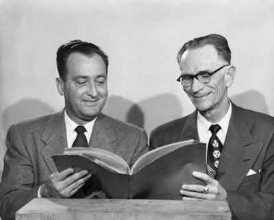 J. H. Landers, right, of Temple, was chosen president, and J. T. LaRoque, left, of Abilene, vice president, at a meeting of the Texas Newspaper Advertising Managers Association at Hotel Texas.