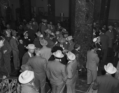 The white hat of the Western Cattleman was visible in large numbers in Fort Worth hotel lobbies as ranchmen from over the West attending the convention of the American National Cattlemen's Association huddled to swap range gossip.