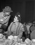 Women attending the American National Cattlemen's Association meeting. Greeting each other as are Mrs. Lawrence Merchant of Carlsbad, New Mexico, left, and Mrs. Ray Willoughby of San Angelo, seated.