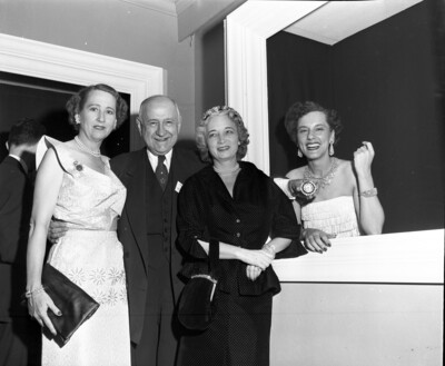 Party at Rivercrest for members of the American National Cattlemen's Association. Mr. and Mrs. Amon Carter and MRs. Icybelle Richardson. Woman at extreme left is unidentified.