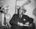 Attending the meeting are left to right, Carl Johnson of Lovington, New Mexico; and Hall Medford of Amarillo. The photo was taken during the convention of the American National Cattlemen's Association held at Hotel Texas in Fort Worth.
