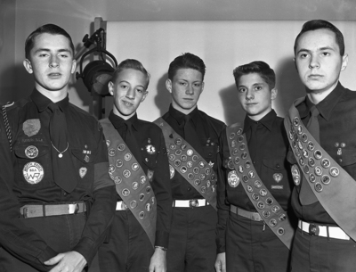 Five members of Scout Post 12 became Eagle Scouts. They are, left to right, David Hardt, 3415 Meadowbrook; Bob Powell, 4436 Meadowbrook; John Cookerly, 2617 louis; Gerald Seemann, 2324 Tierney Road, and Ronald Bradford, 3208 Mount Vernon.