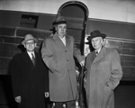 Three General Motors Corporation executives arrived at Fort Worth at Meacham Field for an inspection tour of the Arlington site where the firm erected a huge new plant. They are, left to right, Edwin C. Klotzburger, who managed the new plant; J. E. Goodman, general manager of GM's Buick-Oldsmobile Pontiac assembly division, and Roger H. Ringo, who was plant comptroller.