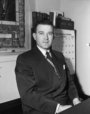 Image here shows Reverend John Shell in suit and tie, pastor of the Arlington Presbyterian Church.