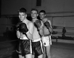 Panther Boys Club's hopes of winning a third straight team title in the Fort Worth regional tournament are pinned on four 1951 titlists. Three of them (left to right) are Bantam Sterling Pruitt, Lightweight Clyde Daniels and Welter Frank Dunnagan. The fourth, Featherweight Horace Hooper is ill. Published in Fort Worth Star-Telegram evening edition January 10, 1952.