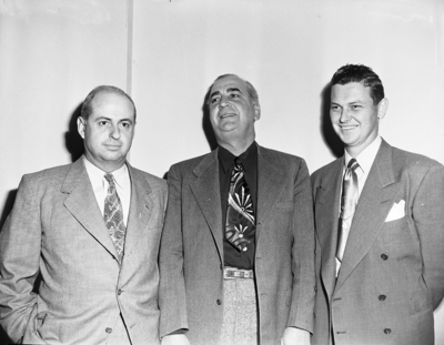 Heading the swine section and boys pig show is F. I. Dahlberg, center, oft Texas A&M College. He is assisted by Roy Boswell of Fort Worth, left, and R. B. Thomas, Jr. of Sulphur Springs. Published in Fort Worth Star-Telegram morning edition January 20, 1952.