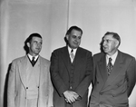 Stewart Sewell, left, of Jacksboro is Aberdeen-Angus superintendent this year; Paul Kautz of Fort Worth, center, heads the poultry, turkeys and rabbits, and Craig Logan, rights, heads the Shorthorn cattle department. Published in Fort Worth Star-Telegram morning edition January 20, 1952.