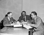 Superintendent of the fat steer department is Dean W. L. Stangel of Texas Technological College, left. He is assisted by G. S. Blackburn of Throckmorton, center, and Walter Labay of Plainview, right. Published in Fort Worth Star-Telegram morning edition January 20, 1952.