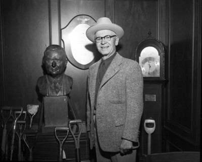 McKelvie, Sam; Clock; Statue; Nebraska Governor; Hat; Shovels