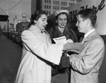 Mrs. Robert Hobbs, left, and Mrs. Warren Sorrells of the League of Women Voters. On the right is Mr. Howard Halff, co-chairman of the Junior Chamber of Commerce committee working in the interest of poll tax payments in Fort Worth.